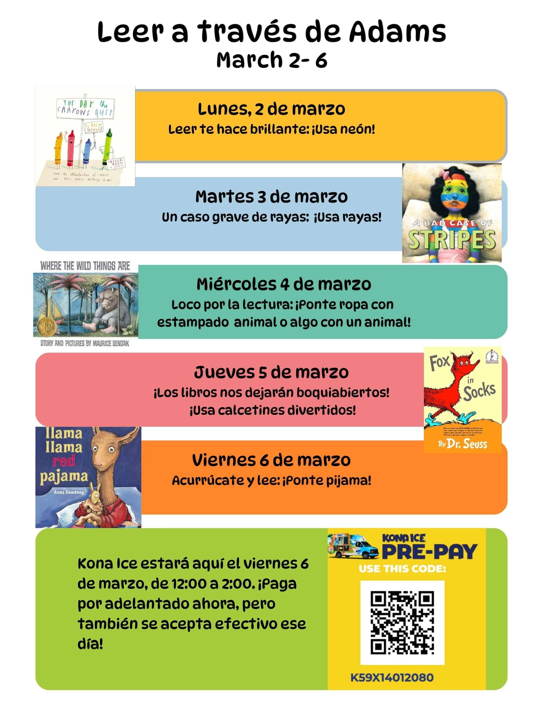 We will celebrate Read Across America all week long! Look for the dress-up days and have your students show how much they love to read!