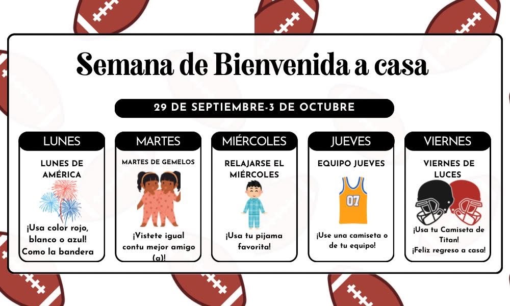 Let’s dress up every day to show our SCHOOL SPIRIT. Don’t forget that Friday is an Early Relase Day. The Homecoming Parade will be on Broad St and begins at 1:30 pm on Friday.